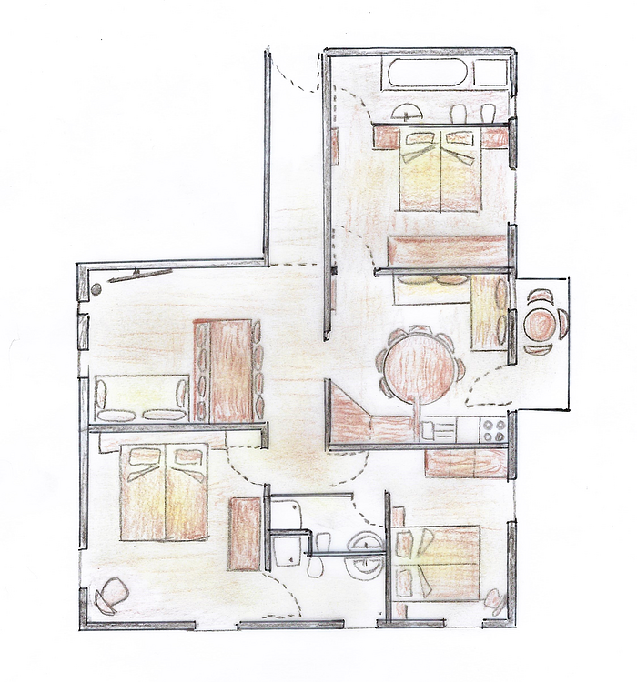 Die Stammhauswohnung Gravenstein befindet sich im ursprünglichen Bauernhaus und ist durch eine Verbindungstür zu erreichen. 3 separate Schlafzimmer plus Ausziehcouch für weitere 2 Personen. Kochnische, komplett ausgestattet mit Keramikkochfeld, Wasserkocher, Kaffeemaschine und Spülmaschine. Essecke für 9 Personen, Sat-TV, WLAN, Safe. Separates Bad für jedes Schlafzimmer mit Haarföhn. Kleiner Südbalkon mit Blick auf das Mittelgebirge.